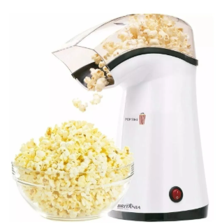 É só colocar o milho na pipoqueira elétrica, apertar um botão e esperar 3 minutinhos.